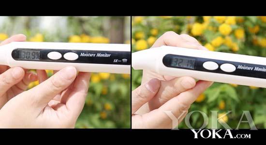 涂完防曬霜的皮膚不能變干皮,要保持水潤才。涂之前編輯的肌膚水分值只有30.9%,涂抹完曬過15分鐘后,水分值保持在32.1%,在北京4月底中午的日頭下表現(xiàn)很不錯啦!