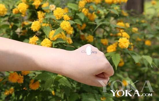 用手指涂開,很水潤的質(zhì)地,而且不厚重容易延展,它還具有防水抗汗功呢,春游季帶它出門便攜又給力。