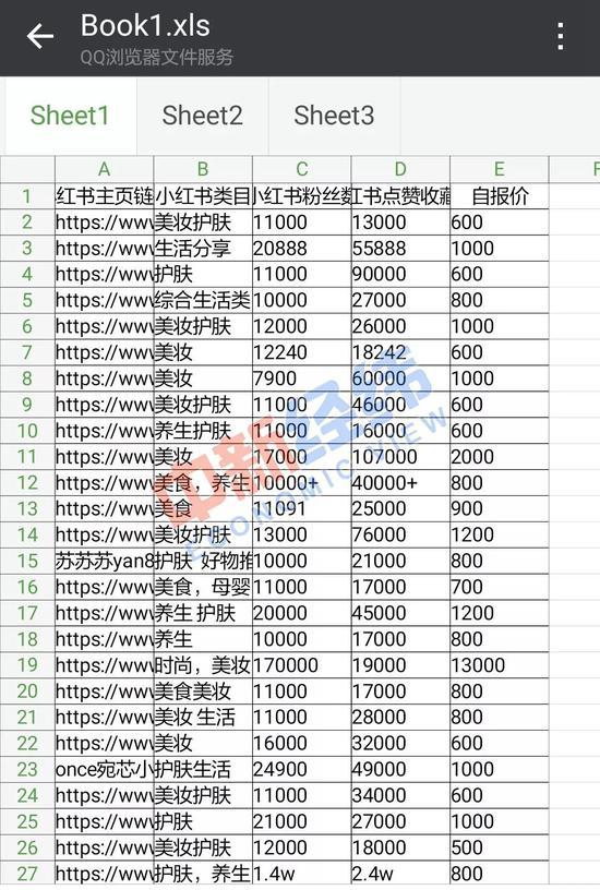 至于筆記代發(fā)的價格,小秋則提供了一份更為詳細的清單。在這份清單上,不僅有代發(fā)人在小紅書的主頁鏈接、所屬類目,還有粉絲數(shù)、點贊收藏數(shù)和自報價。小秋向中新經(jīng)緯解釋,這份清單是之前做過的產(chǎn)品報價,僅供參考。筆記代發(fā)是沒有固定價格的,因為每位達人的要價不一樣,達人看了產(chǎn)品才會給出報價。