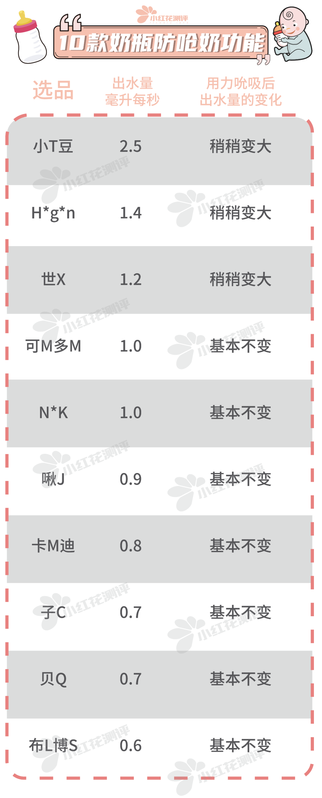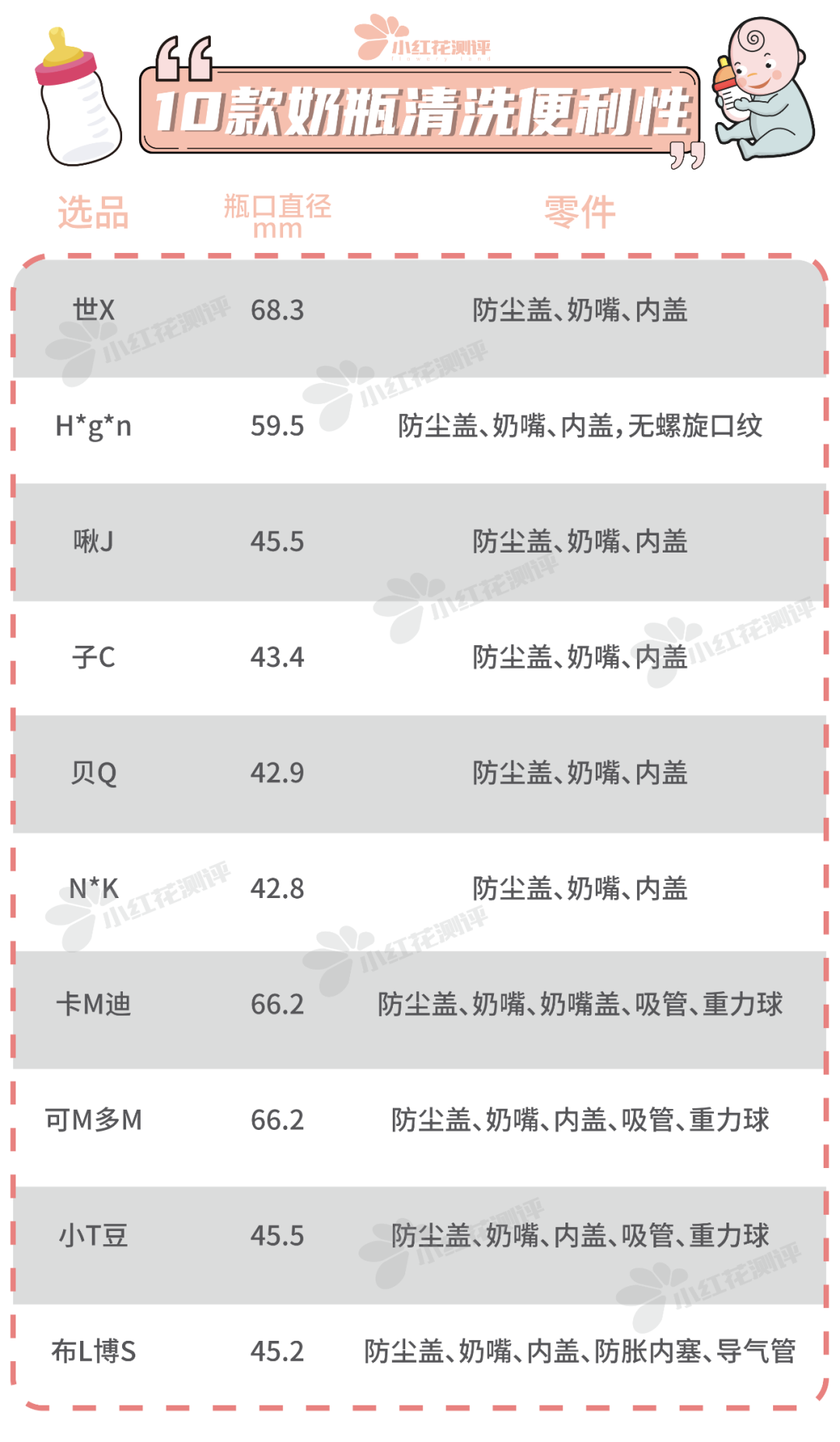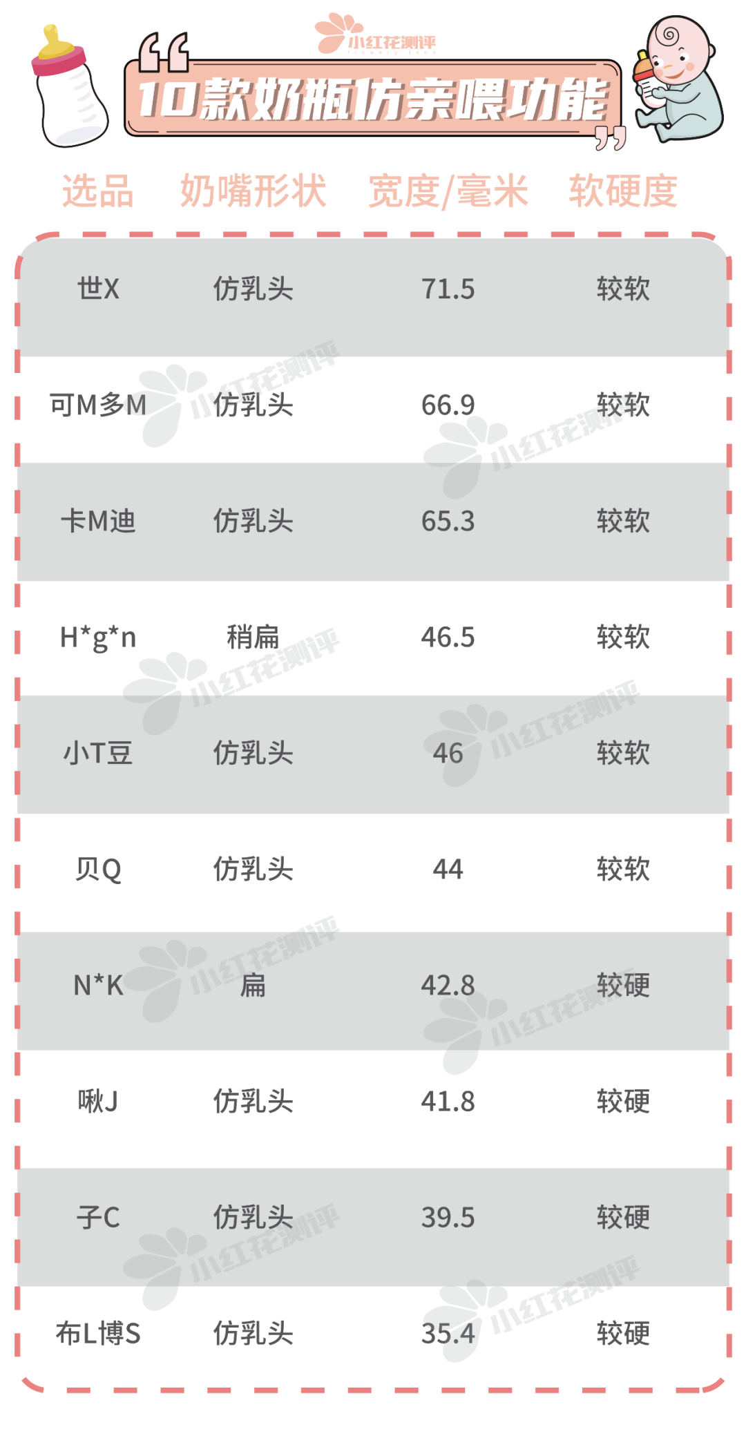 “小紅花測(cè)評(píng)”公眾號(hào)后臺(tái)回復(fù)“嬰兒奶瓶”可查看完整品牌名。
