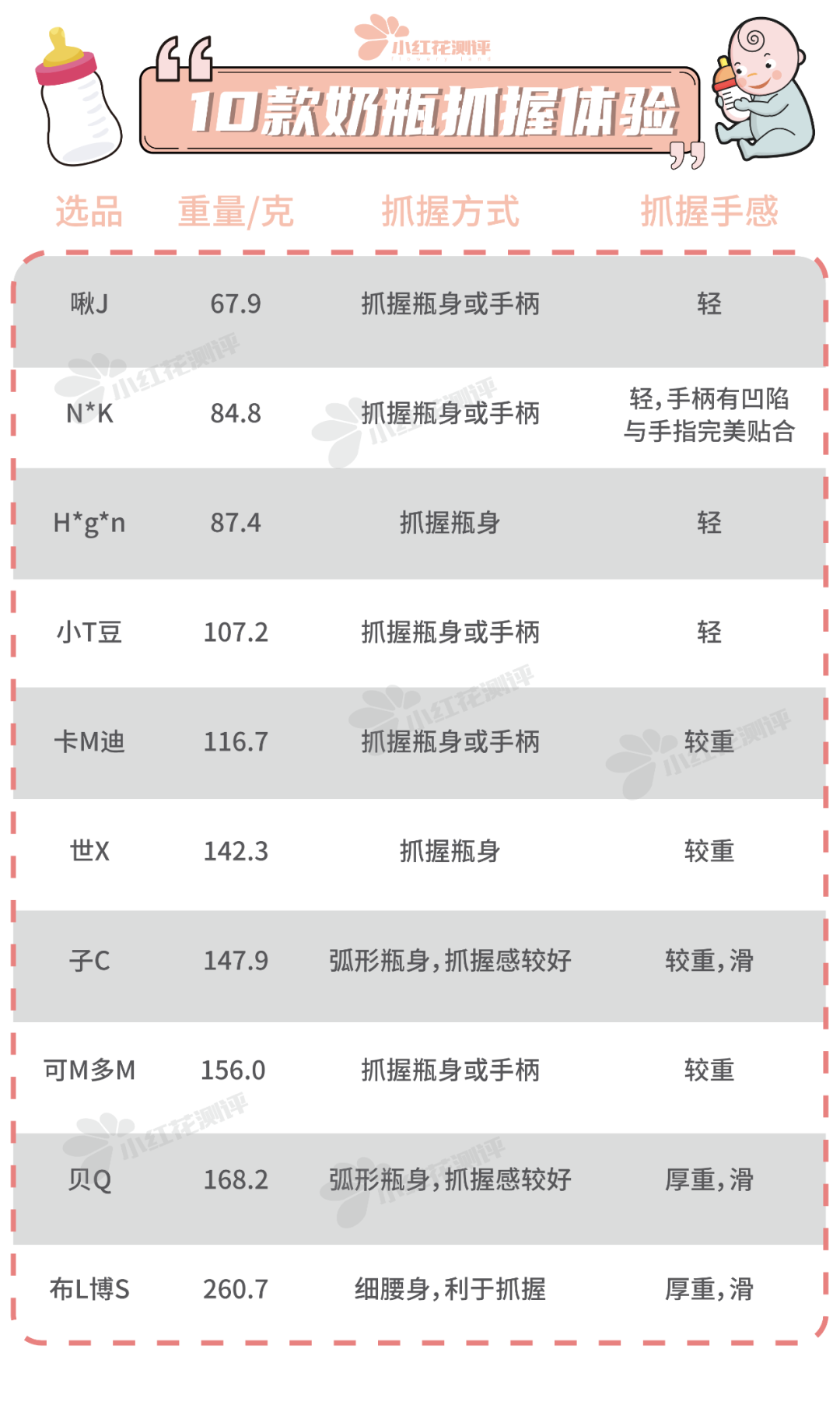 花爸根據(jù)電商平臺(tái)銷量、粉絲要求,選出10款奶瓶。