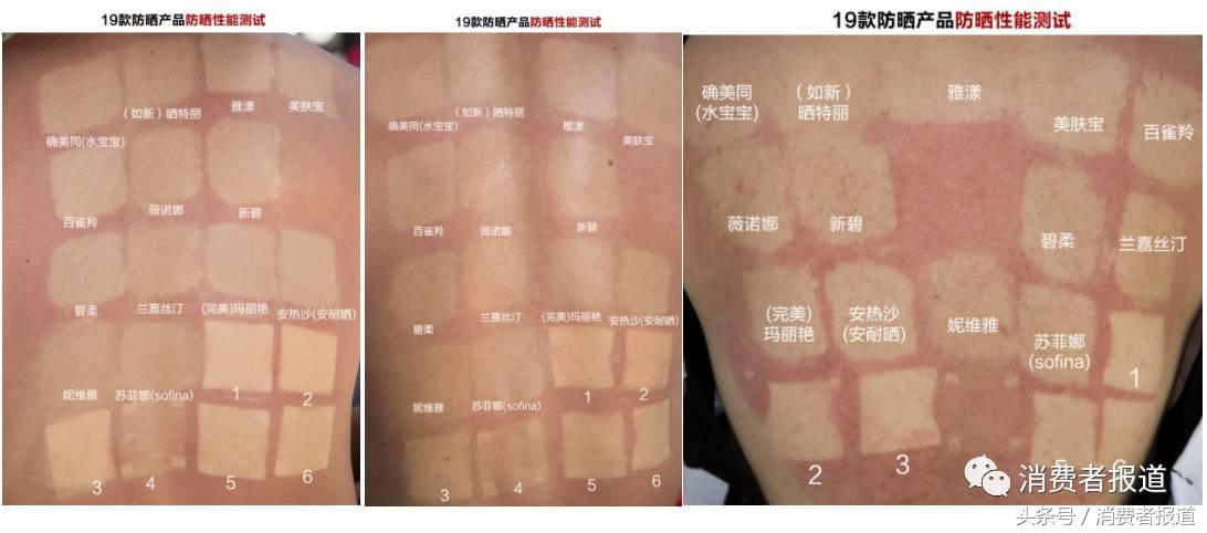▲標(biāo)1-6序號(hào)的即為防曬織物,從膚色看出,它們的果普遍好于防曬霜