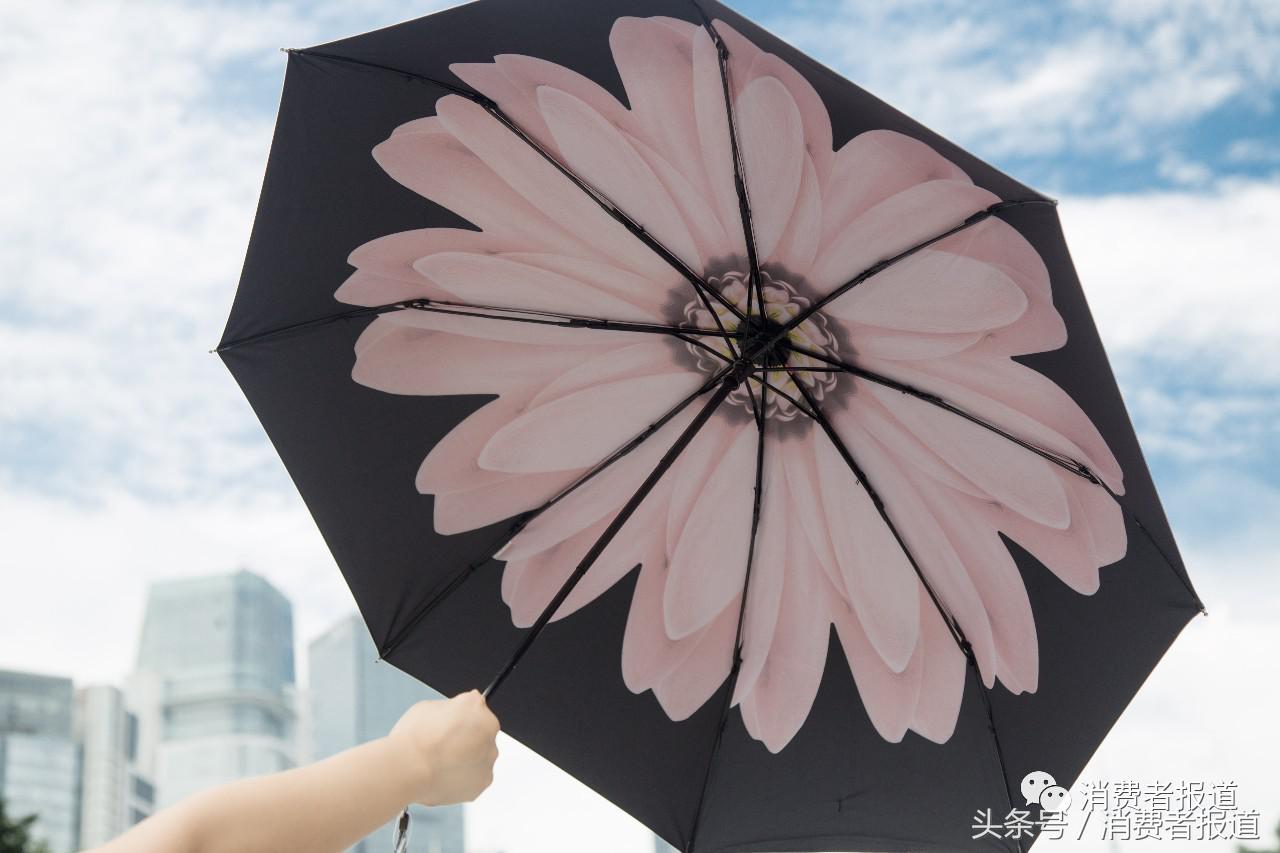 此次測(cè)試還加入了蕉下、天堂2款太陽(yáng)傘。兩款傘面均采用正面純黑,底面有大花的造型。不過(guò),蕉下采用的是雙層布加涂層,輕便性稍遜,但防曬果實(shí)測(cè)確實(shí)好于單層布的天堂傘。日常使用中,選擇加密和加厚的陽(yáng)傘布料,也能帶來(lái)更好清涼和防曬果。