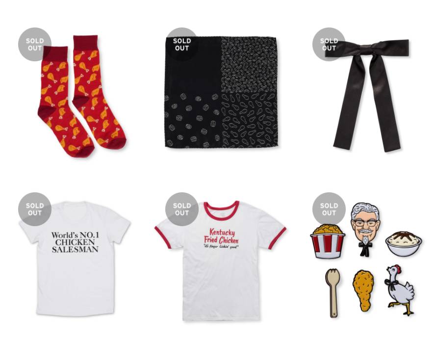 今年7月份,肯德基爺爺和Wieden + Kennedy合作開(kāi)了一家服裝“網(wǎng)店”,網(wǎng)站什么都賣▼