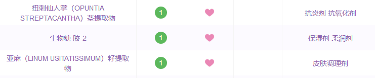 除此之外還添加了一些抗炎舒敏成分,能夠溫和修護(hù)破損皮膚屏障。仙人掌莖提取物能夠抗菌抗炎,有防治粉刺的果。