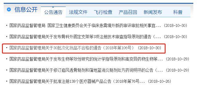 發(fā)布關(guān)于30批次化妝品不合格的通告
