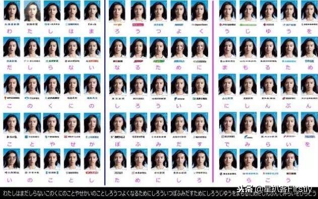 每張報(bào)紙上木村光希的口型都不一樣,右上角都有一個(gè)和口型相對(duì)應(yīng)的平假名, 74個(gè)假名按順序連起來是一句完整的話: