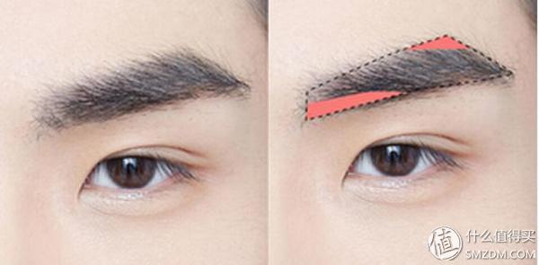 相比于女生五花八門的眉形,男生眉形基本上是“一招鮮,吃遍天”,按照下圖刮除框框之外的雜毛,突出棱角感即可。