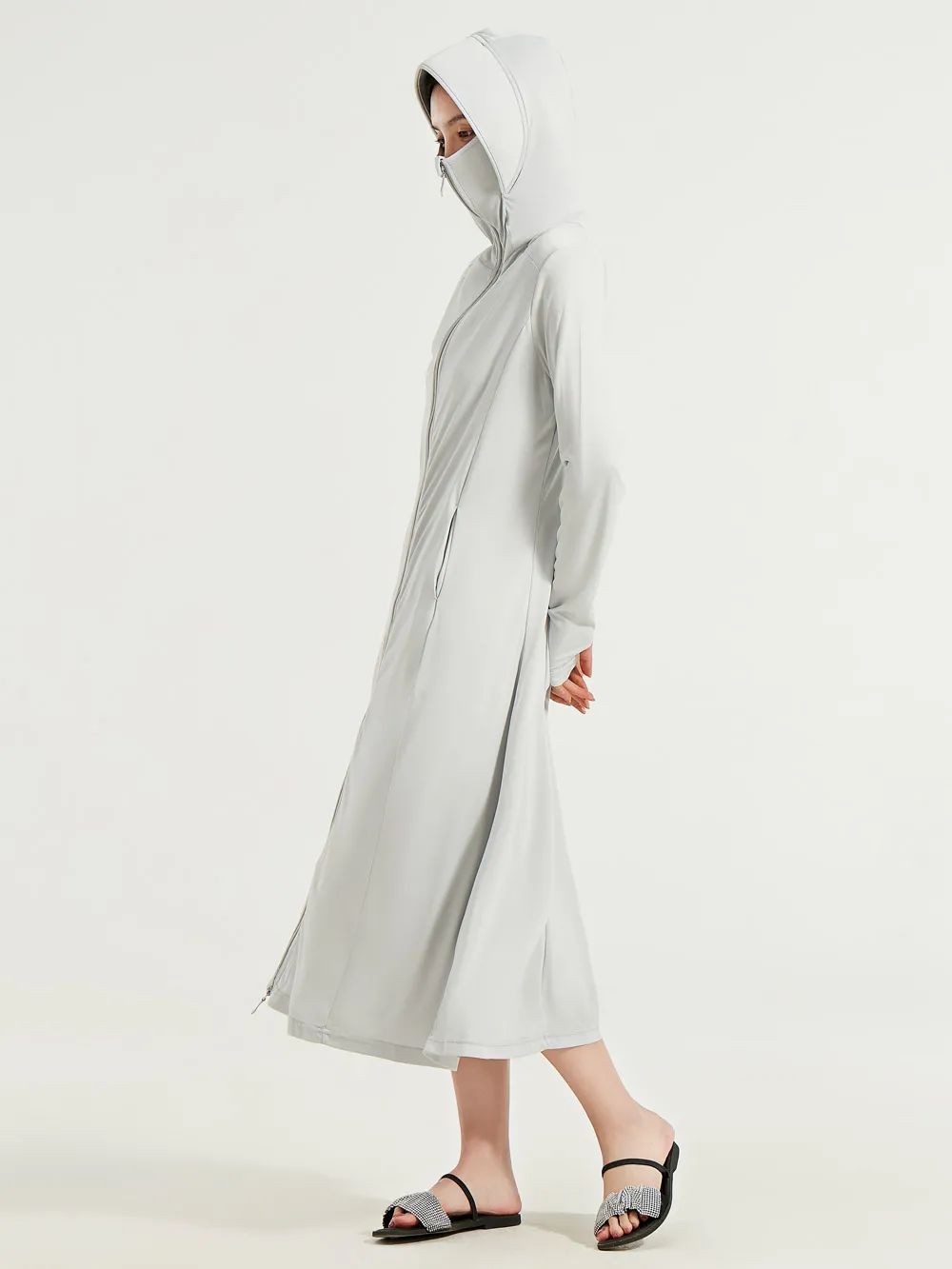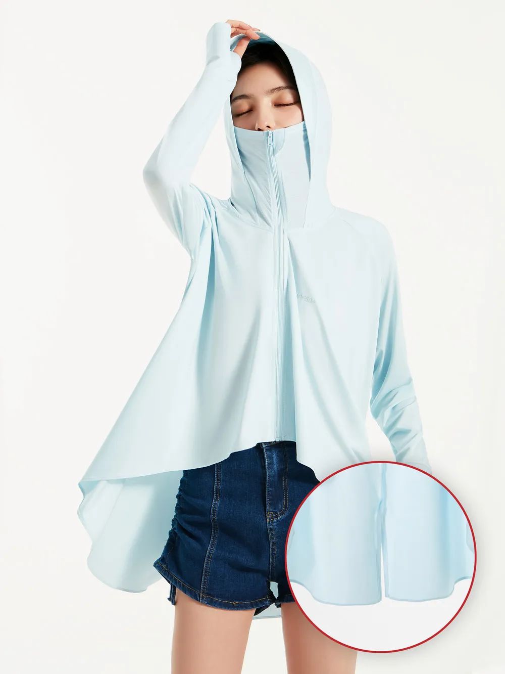 不僅能把上半身和胳膊保護(hù)起來,手背、脖子、臉,也都照顧到了,長款甚至能把腿都遮住一大半,簡直是嚴(yán)嚴(yán)實(shí)實(shí)。