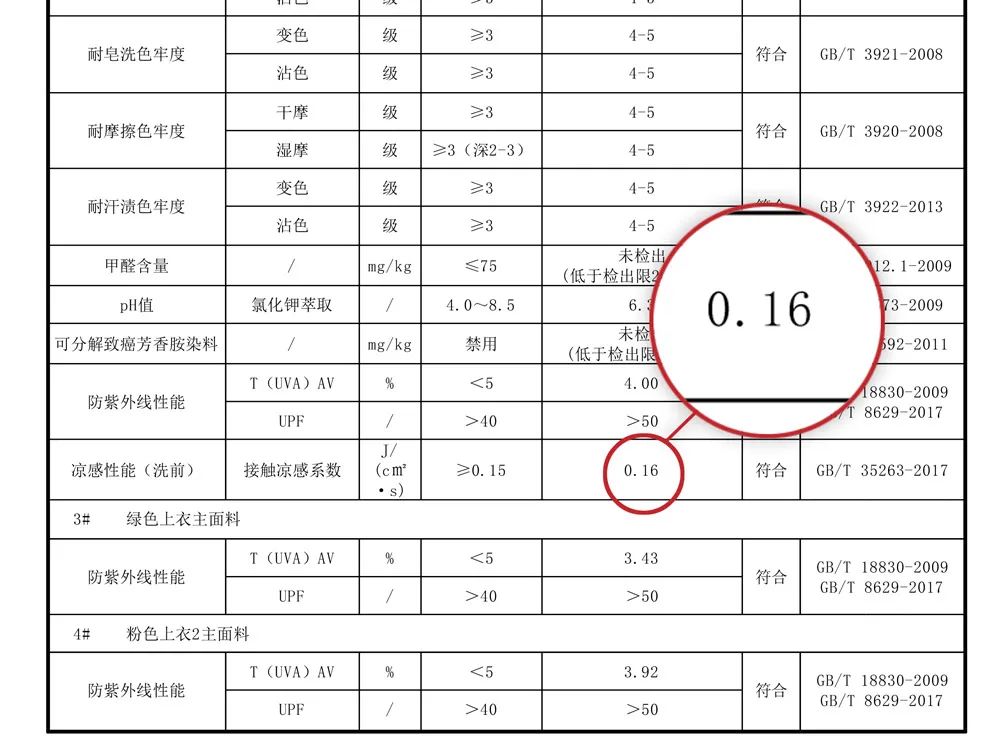 經(jīng)過檢測,接觸涼感系數(shù)達(dá)到了0.16,被判定具有涼感。