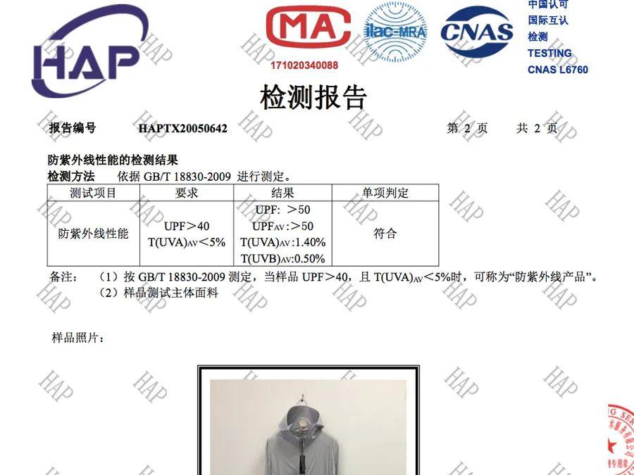 經(jīng)過檢測,這款防曬服的UPF>50,能有抵御紫外線對皮膚的傷害。