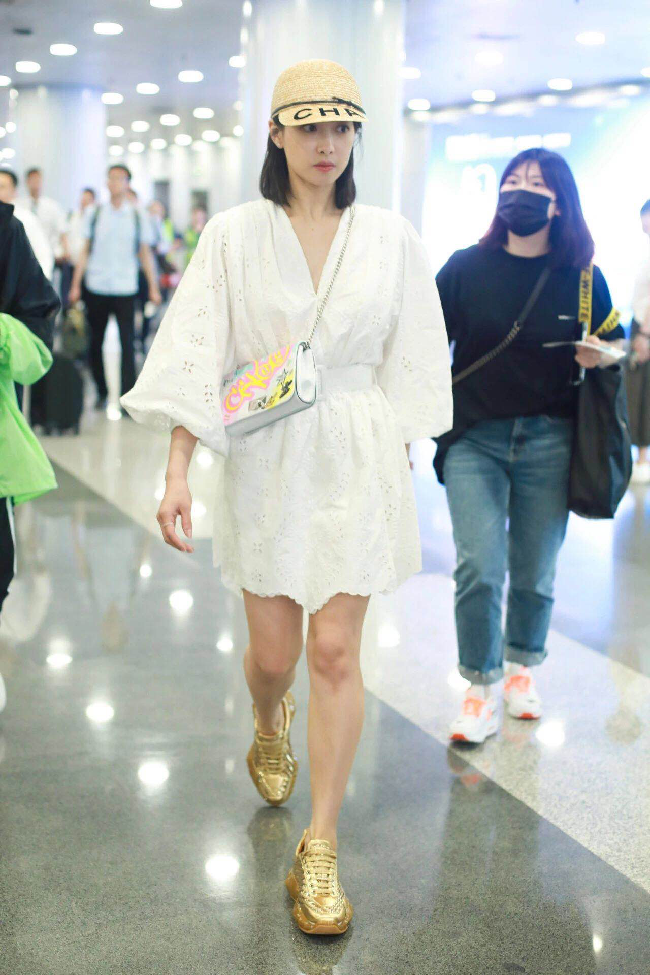 除了鐘楚曦,宋茜的機(jī)場look中,佩戴香奈兒新的雙檐遮陽草帽,有一種清爽舒適的感覺???!雖然草帽在材質(zhì)上都是編織的款式,但是不同的款型卻可以打造出不一樣的風(fēng)格。