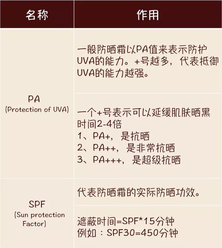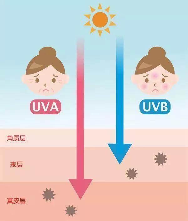 UVB:能量高,是曬紅曬傷的元兇,能引起紅腫、水泡、脫皮等癥狀,甚至皮膚癌。但UVB穿透力一般,玻璃、衣服和遮陽傘等都可以阻擋部分UVB。UVA:穿透力強,可直達層,是曬黑、老化的元兇。UVA可以穿透大部分透明的玻璃以及塑料,打傘、戴帽子甚至躲在家里都不能完全避開UVA的“攻擊”。一般防曬產(chǎn)品中,SPF值表示防曬霜的實際防曬功,PA值表示防護UVA的能力。