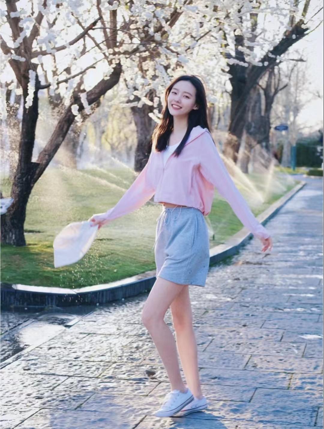 吊帶+短褲怎么穿都是元?dú)鉂M滿的樣子,外搭一件粉嫩嫩的防曬衣,畢竟太陽有點(diǎn)大。出門前把胳膊脖子抹滿防曬霜真的太麻煩了,好在現(xiàn)在防曬衣的設(shè)計(jì)都比較時(shí)尚,是一件日常休閑運(yùn)動搭配的開衫。