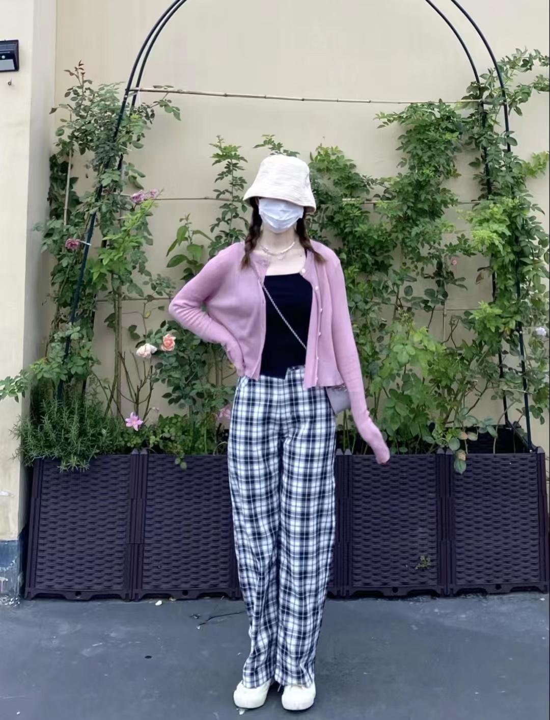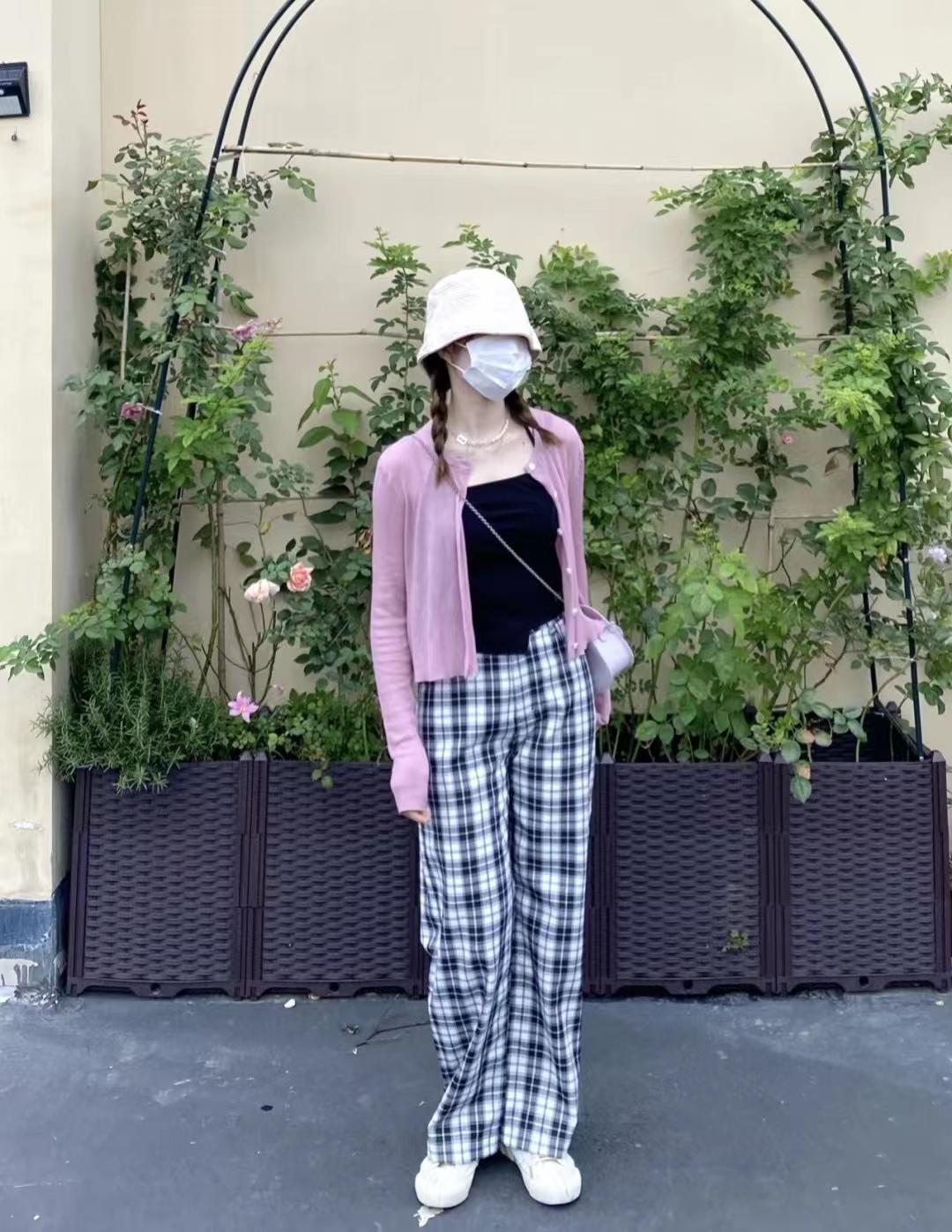 香芋紫防曬小開衫顏色顯白又防曬,小開衫是那種網(wǎng)紗帶針織的感覺,上身挺涼快,彈性大,單穿或者搭配吊帶都可以,內(nèi)里搭配一個(gè)黑色吊帶,脖頸間顯得更白了,下面搭配一個(gè)格子褲休閑又簡單,日常出門的休閑穿搭。