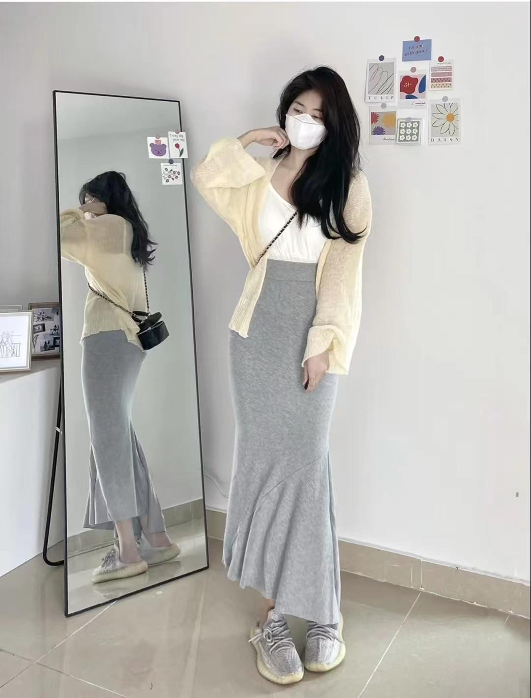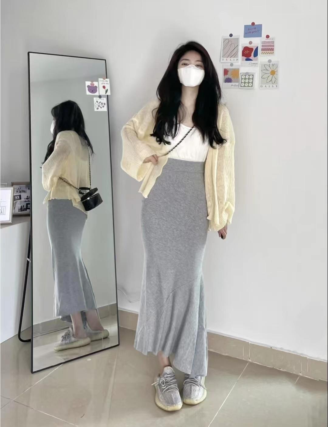 防曬開衫+魚尾裙是純欲風(fēng)韓系溫柔女主穿搭:這一套就是溫柔天花板,防曬針織開衫配上吊帶背心加上魚尾裙真的太純欲了,魚尾裙真的顯身材,慵懶又溫柔,穿上這套真有那韓劇女主那感覺了,夏天穿也不會熱。