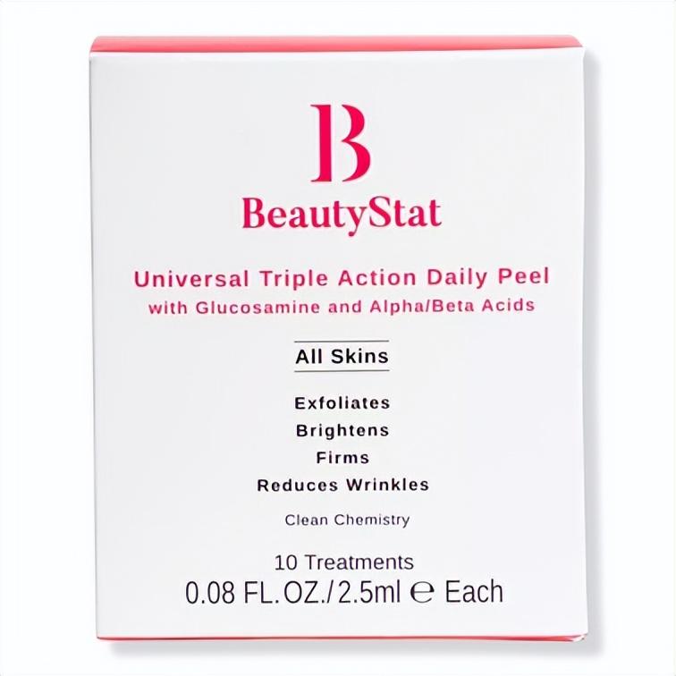 由氨基葡萄糖和 α/β 酸制成適合所有膚質(zhì)幫助您獲得更光滑、更緊致、更容光煥發(fā)的肌膚“我一直在努力堅持去角質(zhì),而 BeautyStat 的通用三重動作日常去角質(zhì)讓這一切變得簡單。你所要做的就是在你的皮膚上輕輕按摩 20 秒。該產(chǎn)品承諾更光滑、更緊致、更容光煥發(fā)的皮膚。我可以確認(rèn)它符合這些要求。” ---奧利維亞漢考克,編輯