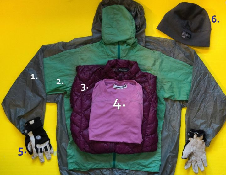 衣物:備用衣服包括一件雨衣、一件羽絨服、一件長袖T恤、一件超輕皮膚衣/防風衣、一條內(nèi)褲、兩雙換洗襪子、一副手套、一個絨帽,就差不多了。**抓絨、軟殼、硬殼、多余長褲、內(nèi)褲、多余運動胸罩、多余襪子都可以扔掉。**衣服面料:羊毛:排汗好、無異味,濕了之后還能保暖;缺點是容易破損羽絨:濕了之后會喪失保暖性;fill power越高越保暖;蓬松放置,保質(zhì)期超長;切勿機洗防蚊涂層:columbia、outdoor research、ExOffocio等公司有防蚊涂層的面料化纖:速干,濕了之后較冷;不排體味,不防火棉:除了頭巾之外,其他東西都不應該是棉的