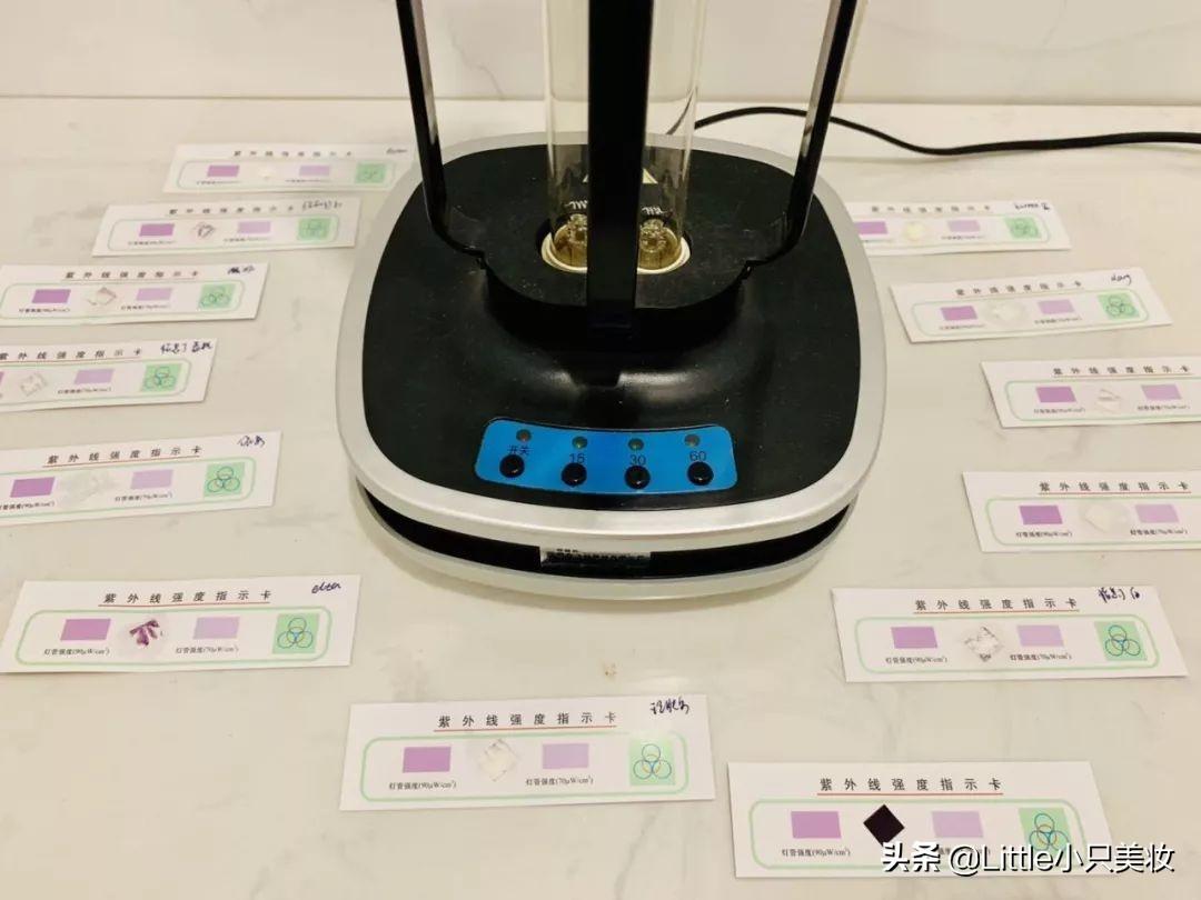 不整有的沒的慢慢鋪墊,直接上紫外線燈!畢竟能不能長對抗紫外線,是防曬霜的必備修養(yǎng)。在紫外線試紙上均勻涂抹防曬霜后,用紫外線燈統(tǒng)一照射30分鐘。行不行,先讓紫外線說了算吧!