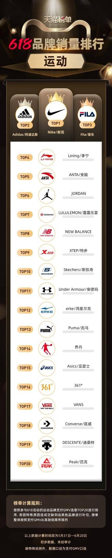 天貓公布618運動戶外品牌榜:耐克位列運動行業(yè)榜首