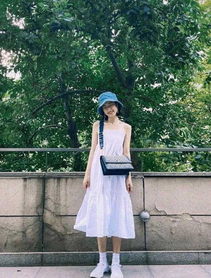 如果要玩水上項(xiàng)目,想要清涼舒適,可以和程瀟、鐘楚曦一樣,用簡(jiǎn)單的白T短褲搭配漁夫帽。