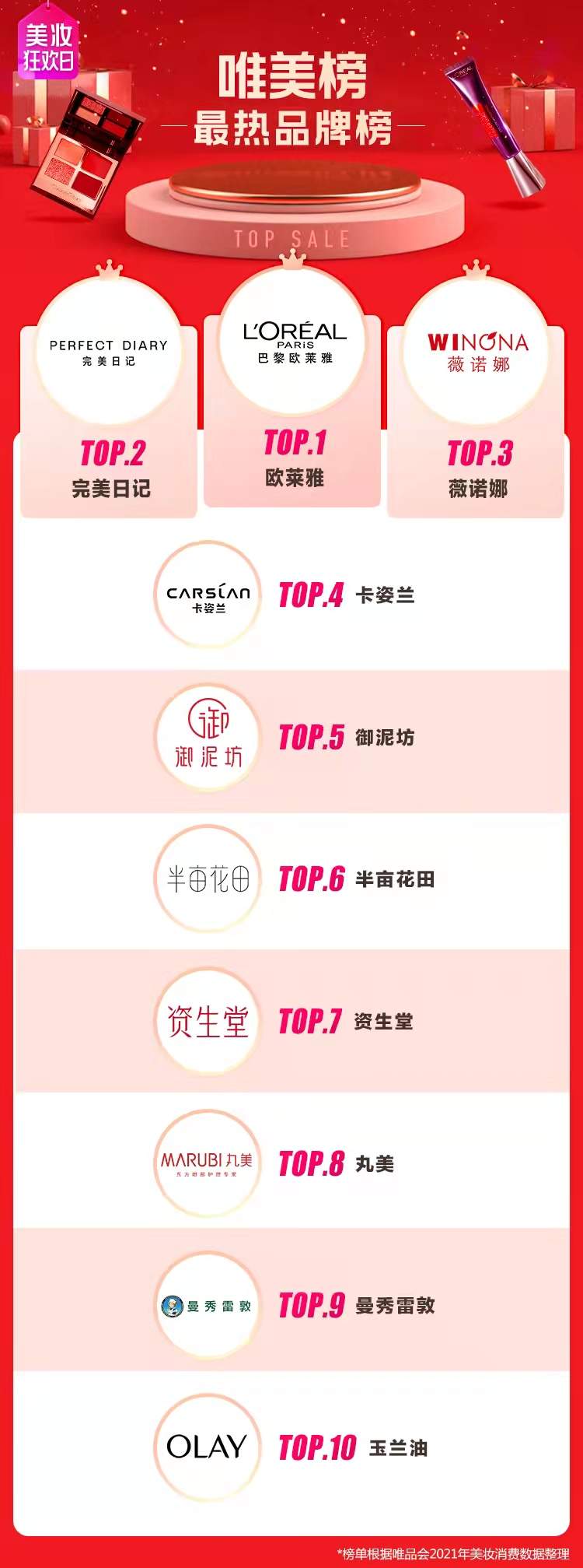 近日,唯品會推出2021年度唯美榜,并根據(jù)站內(nèi)美妝銷售數(shù)據(jù)、平臺搜索數(shù)據(jù)、專業(yè)買手推薦、用戶真實評價等多維度數(shù)據(jù),同步發(fā)布全年美妝消費十大關(guān)鍵詞,為消費者提供2021“唯美”總結(jié)和2022趨勢預(yù)測。