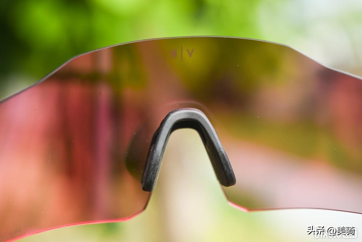 整體設計十分簡潔,鏡片上僅有代表款Van Rysel 品牌的“V|R”字母縮寫,不知道的還以為是能展示虛擬現(xiàn)實果的VR眼鏡呢。