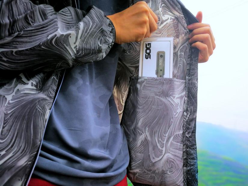 采用了諾詩蘭家的EXOTHERM? FREE+ AIR 輕量智能透氣科技,其緊密的表面帶來強大的防水功能,在戶外運動時可有避免和減少因風寒而造成的失溫。當時無論在江邊還是山上埡口處,風都挺大的,我的臉部感到大風呼嘯而過,臉上一片碧波蕩漾,但是內(nèi)部還是沒有起一絲漣漪,足見其防風功。