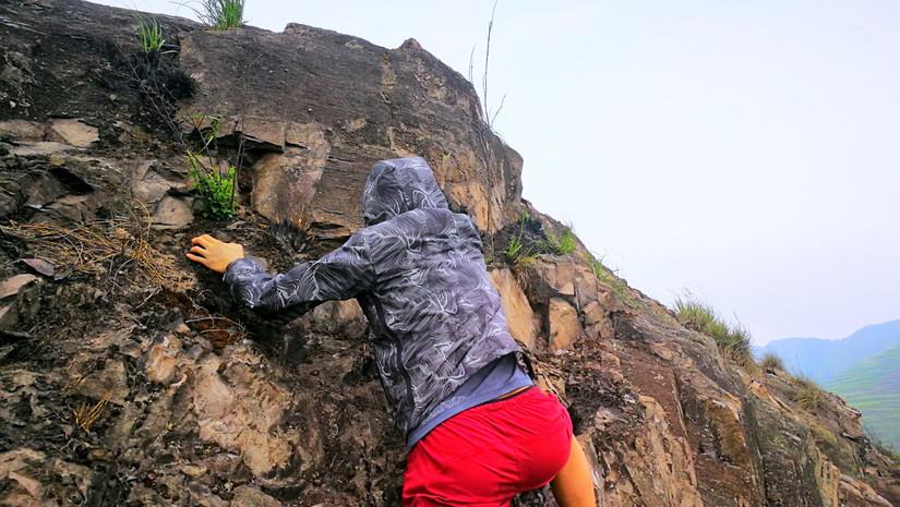如上圖,在徒步路途中遇到需要攀爬的路段,諾詩蘭的EXOTHERM?動態(tài)彈力科技就發(fā)揮出他的作用了,整個攀爬過程舒暢,不會覺得有束縛感。