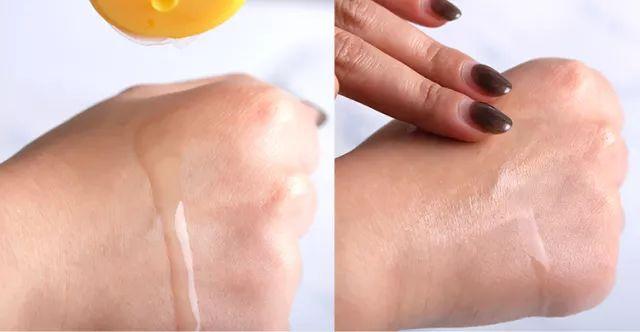 味道是香香甜甜的橙子味,聞起來舒服,質(zhì)地是清透的水狀,涂抹起來很清爽,完全不用擔(dān)心會粘稠。