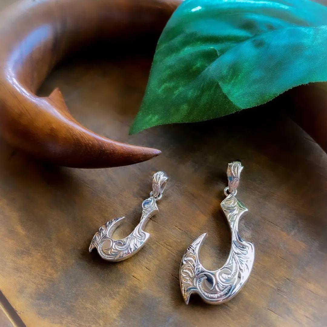 與強調民族文化的印第安銀飾同樣,夏威夷珠寶亦將其獨特的地理環(huán)境與民俗所派生出的象征物融入在了飾品之中。就例如印銀中常用“鷹”、“羽毛”、“箭矢”等元素,相應的夏威夷珠寶則會將“波浪”、“雞蛋花”、“鯨魚”、“魚鉤”等事物以花紋或單獨的形態(tài)在珠寶中呈現(xiàn)。
