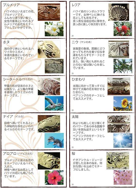 之所以說 Hawaiian Palms Jewelry 的產品足夠地道,是因為這一品牌對于夏威夷珠寶的花紋及圖案設計極其講究。除了幾種常見的花紋樣式,Hawaiian Palms Jewelry 還將當?shù)刂拿{凱亞火山、多型鐵心木、尤克里里等你能想到的所有夏威夷文化象征都化為了一個個符號,賦予在珠寶當中。打開它們的官網更是能看到大量關于夏威夷珠寶的歷史背景,以及各類花紋樣式含義的圖鑒與資料。