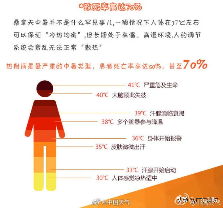 另一名患者53歲的黃先生,在工廠飯?zhí)帽还び寻l(fā)現(xiàn)昏迷在地,送院就診時,體溫達40.1℃。還有一名80歲長者,因為居家通風(fēng)條件有限,加上高溫天氣下著裝依然嚴(yán)實,結(jié)果因為熱射病昏迷送醫(yī)救治無去世。近期全國多地有中暑患者送醫(yī),多人確診熱射病并出現(xiàn)死亡病例。