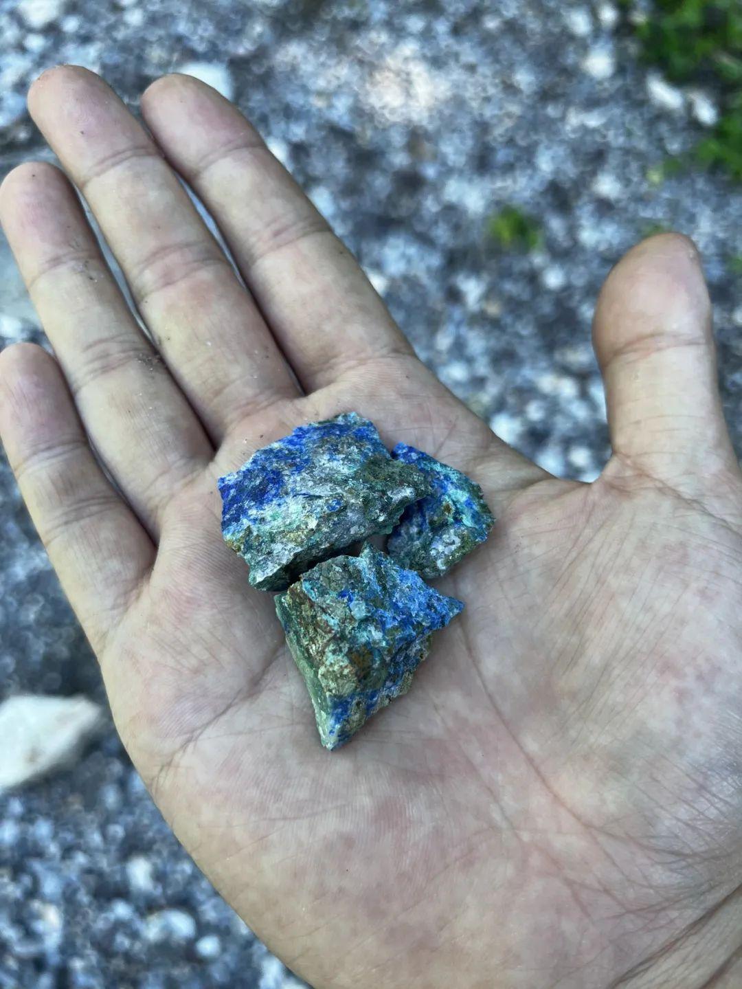 “石青”和“石綠”都是含銅礦物,形成條件類似,還能相互轉(zhuǎn)化。這兩種石頭,綠色的名喚孔雀石,藍(lán)色的名喚藍(lán)銅礦,均屬于堿式碳酸銅,都是含銅礦石的氧化產(chǎn)物,簡單來說就是銅生的銹。