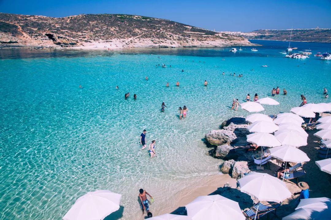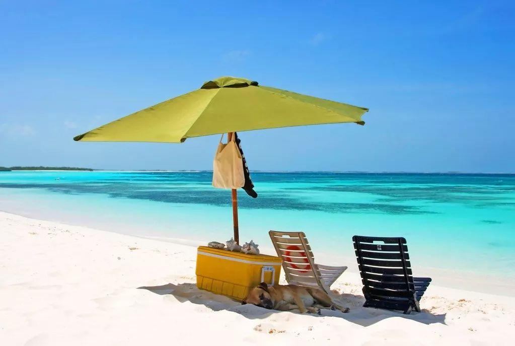 沙灘雪白雪白,把海水映得層次分明,近處是淺淺的綠,遠處是深深的藍,此時此景,再多的煩惱也可以拋至腦后。