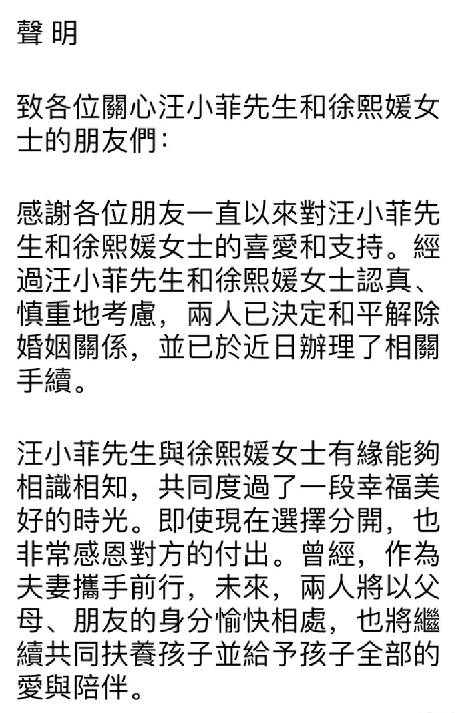 大S和汪小菲一起發(fā)布聲明,稱兩人已經(jīng)辦理離婚手續(xù)。