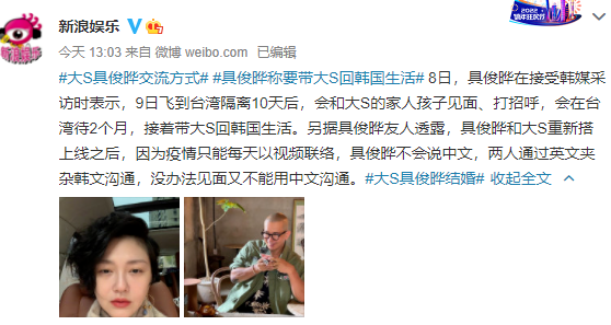 今天,韓國(guó)歌手具俊曄發(fā)文宣布與前女友大S結(jié)婚。