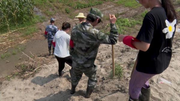 14日江洲是一個(gè)大晴天,徐欣和李文歡他們的任務(wù)已經(jīng)不是扛沙包壘大壩了,而是巡堤。第一天來參與抗洪的徐曉原本以為巡堤是一件輕松的活兒,但沒想到第一次進(jìn)入農(nóng)田的她差點(diǎn)喊救命。