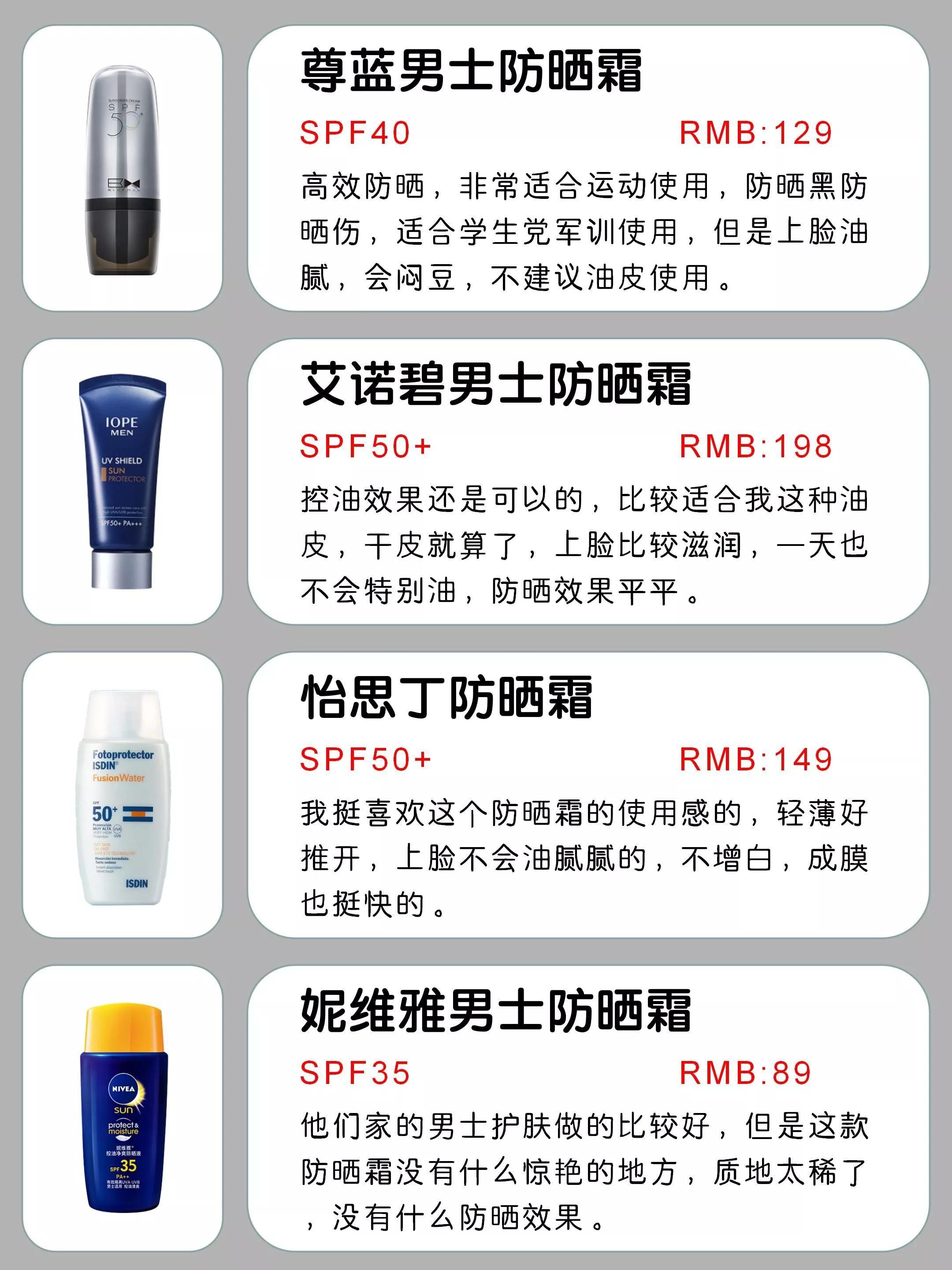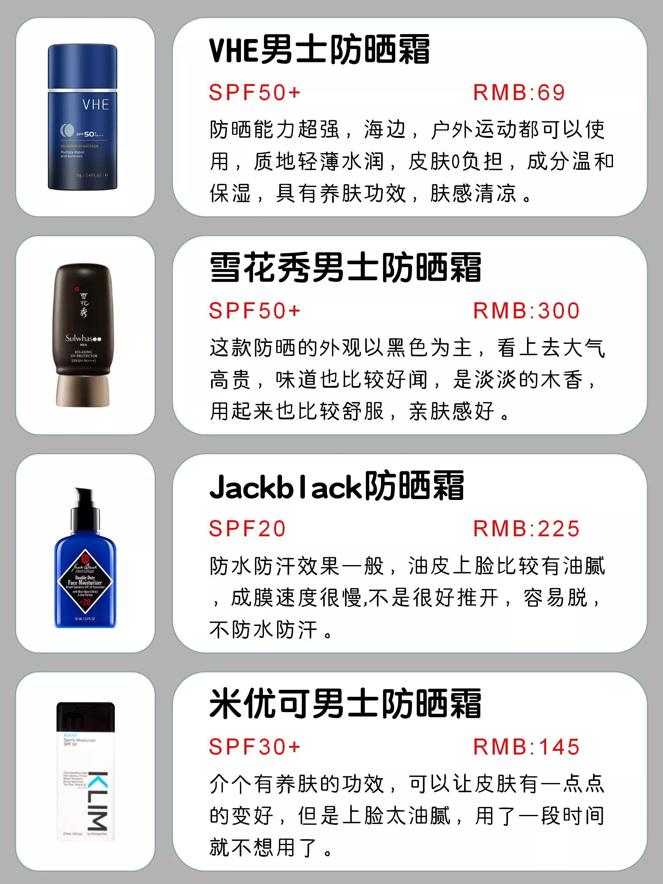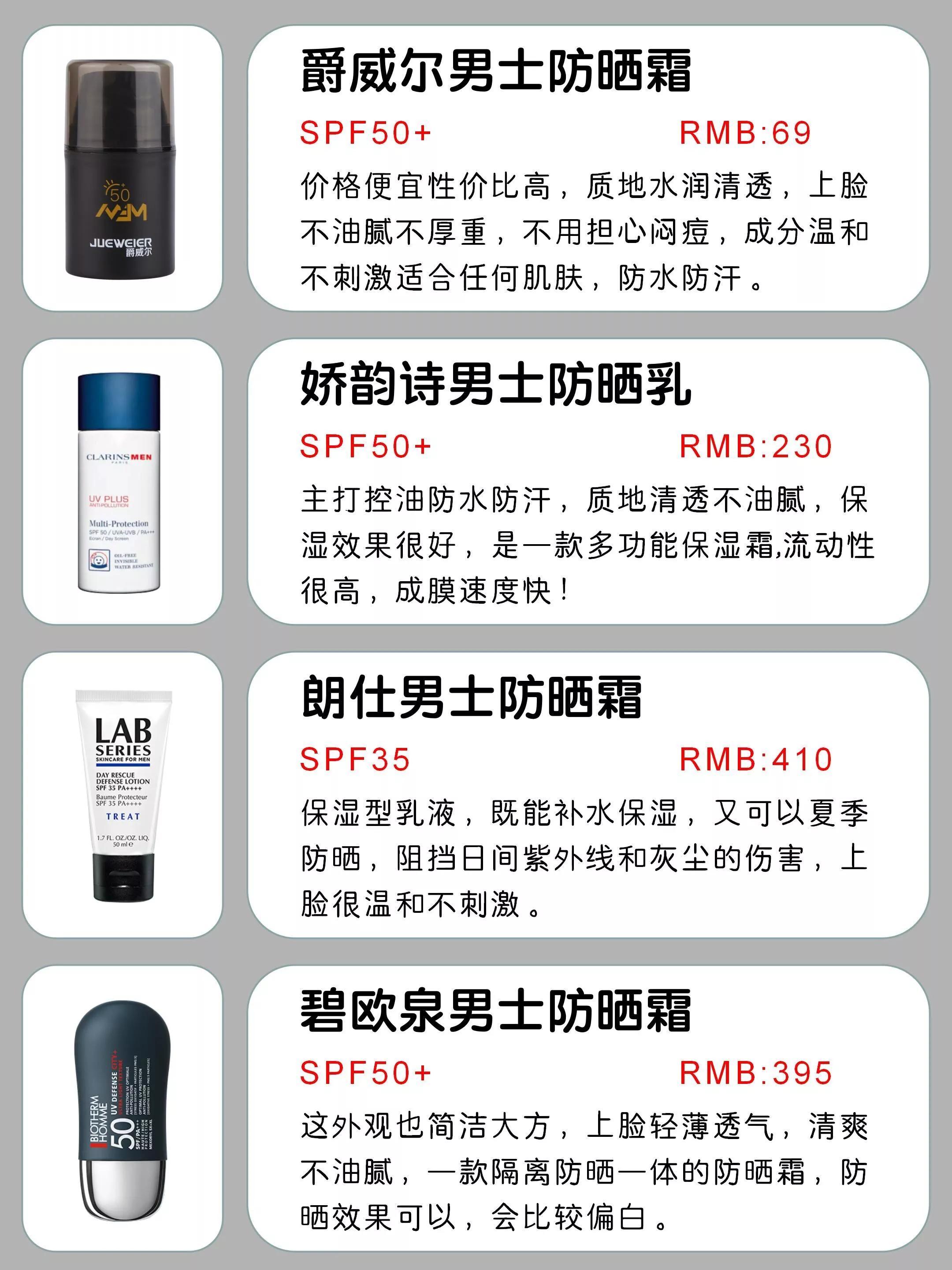 今天就分享一份男士防曬霜段位測(cè)評(píng)