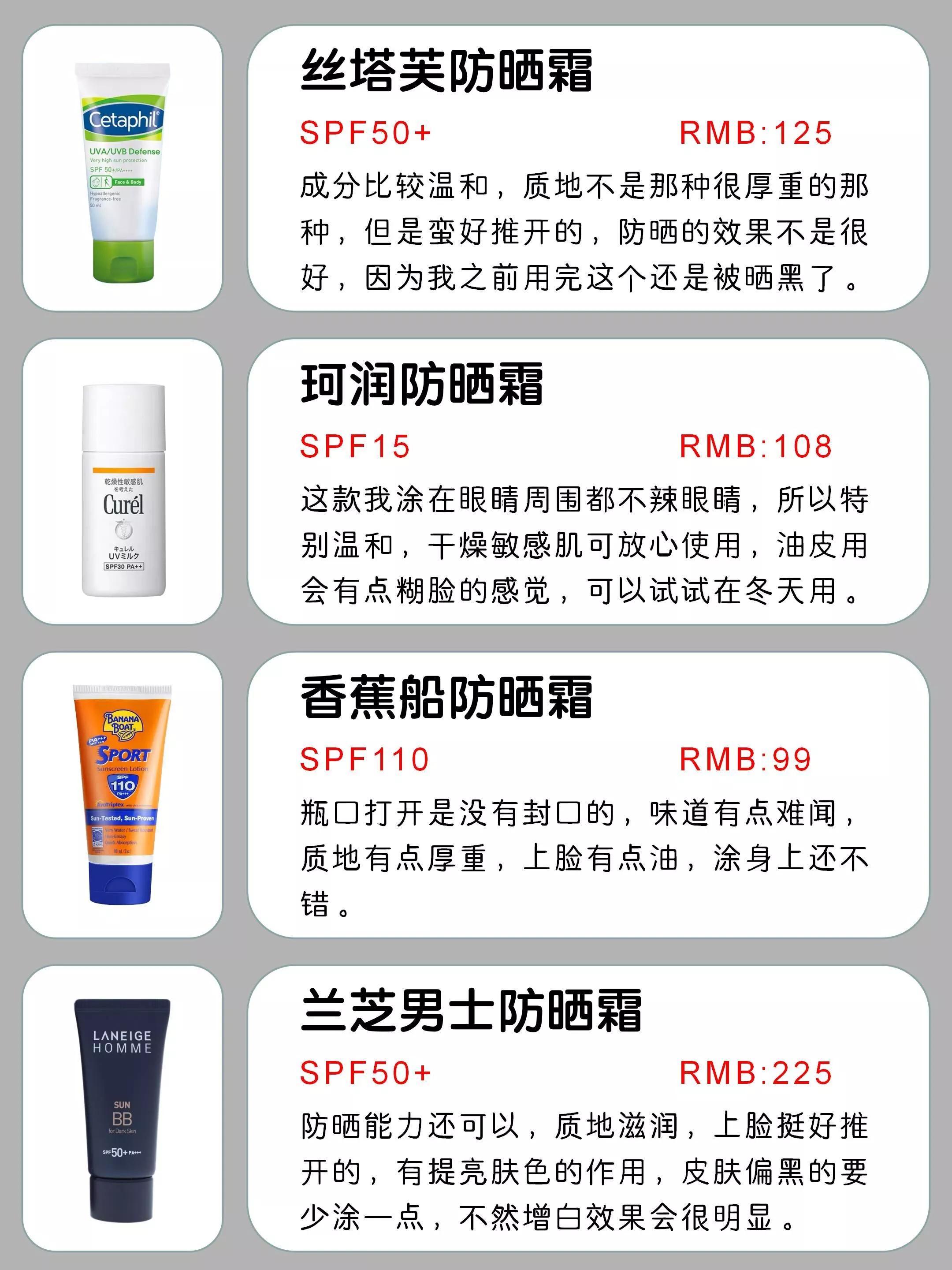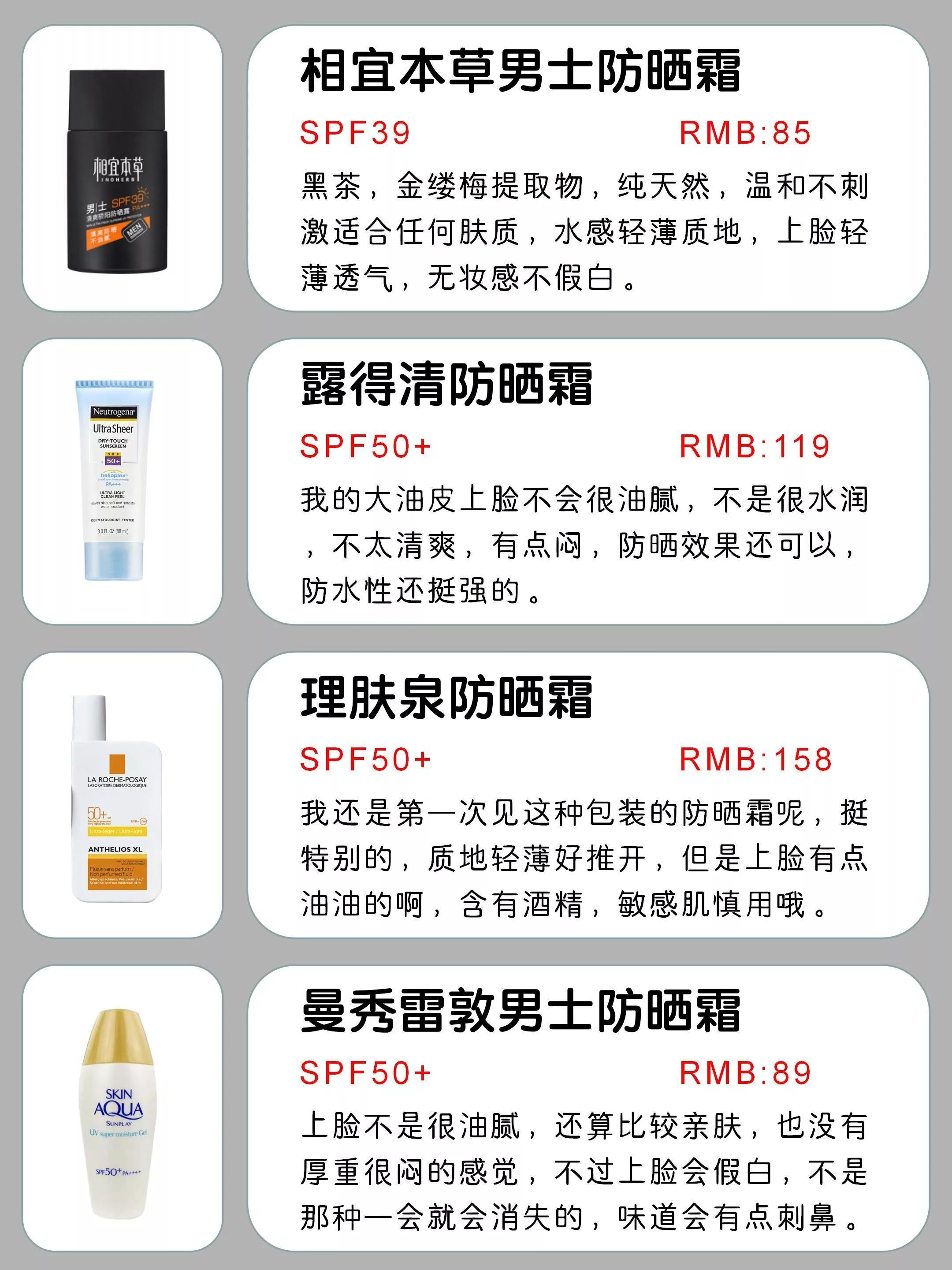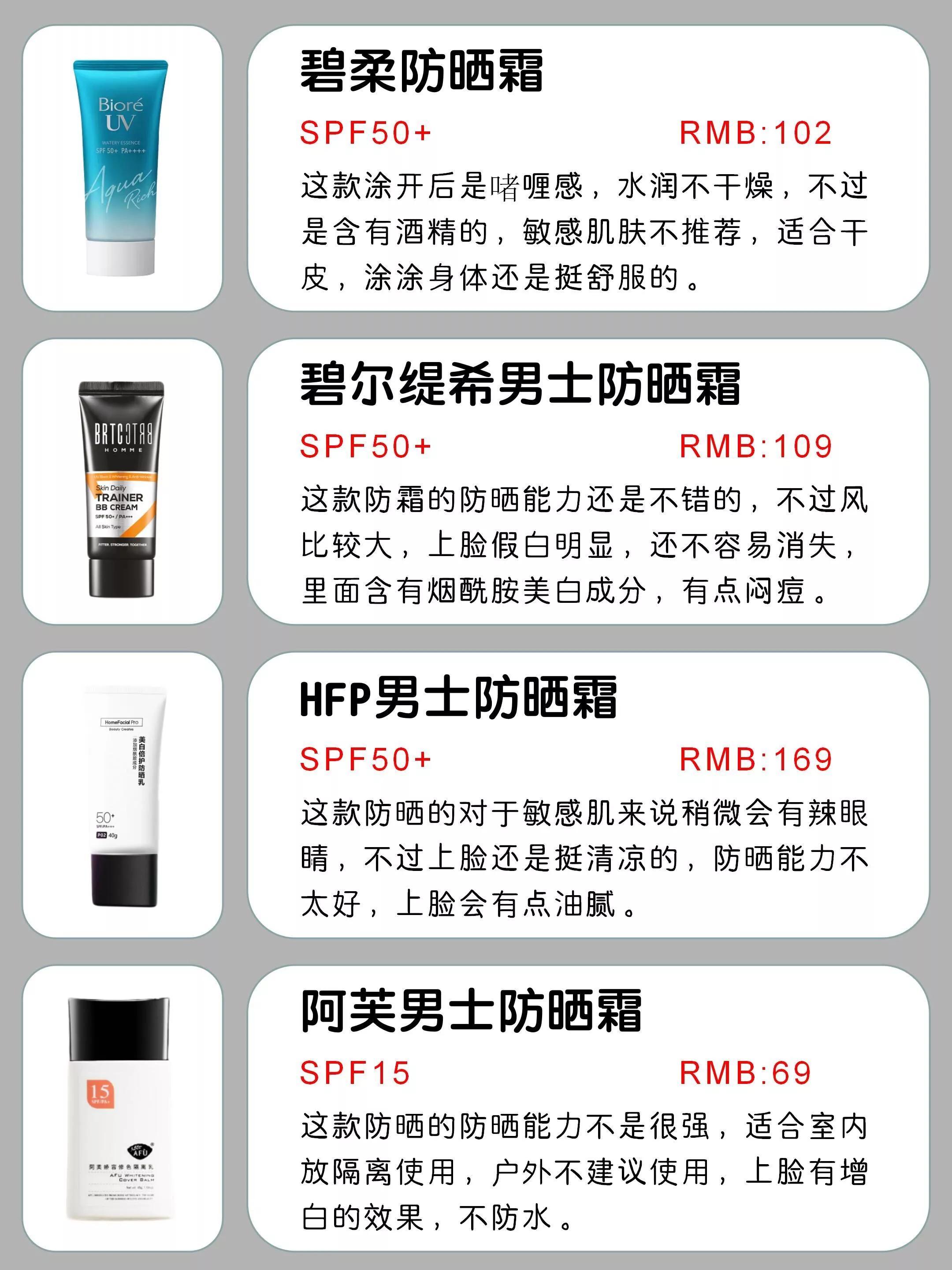 今天就分享一份男士防曬霜段位測(cè)評(píng)