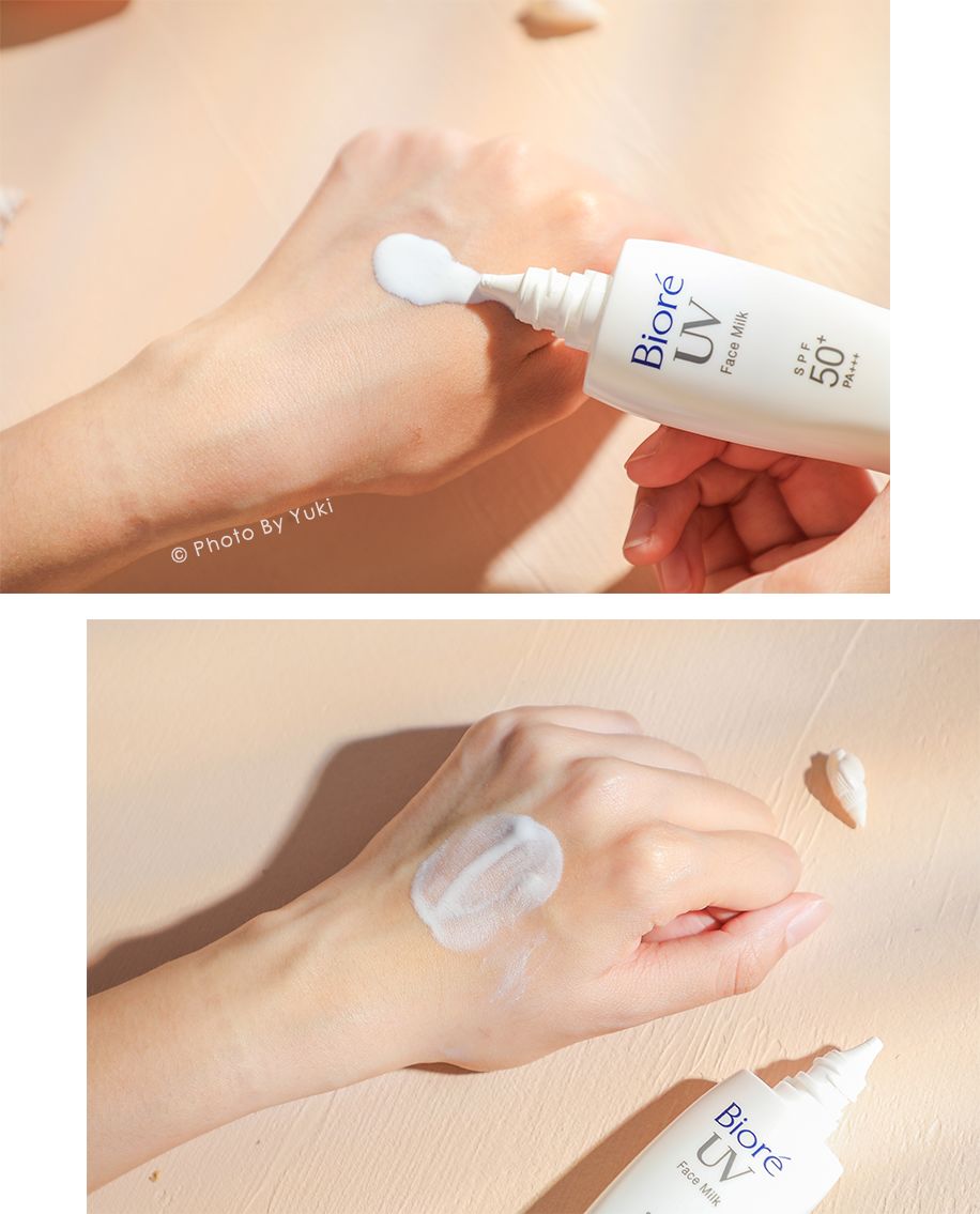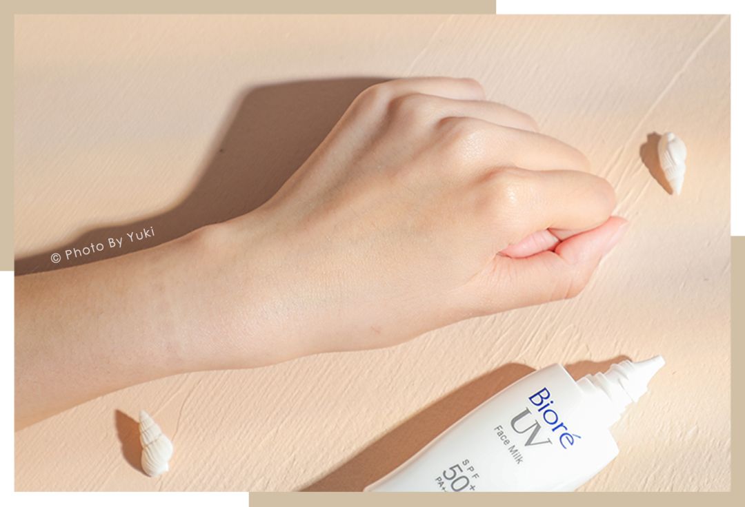 依舊是日系防曬經(jīng)典的涂改液質(zhì)地,輕薄易推開,成膜速度也很快。這款也是物化結(jié)合的防曬,而且還通過了不易致痘測試,敏感肌的小可愛可以放心大膽的入手了。
