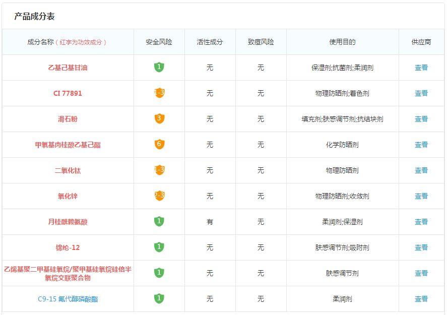 它里面同時(shí)含有:化學(xué)防曬劑甲氧基肉桂酸乙基己酯和物理防曬劑二氧化鈦和氧化鈦。