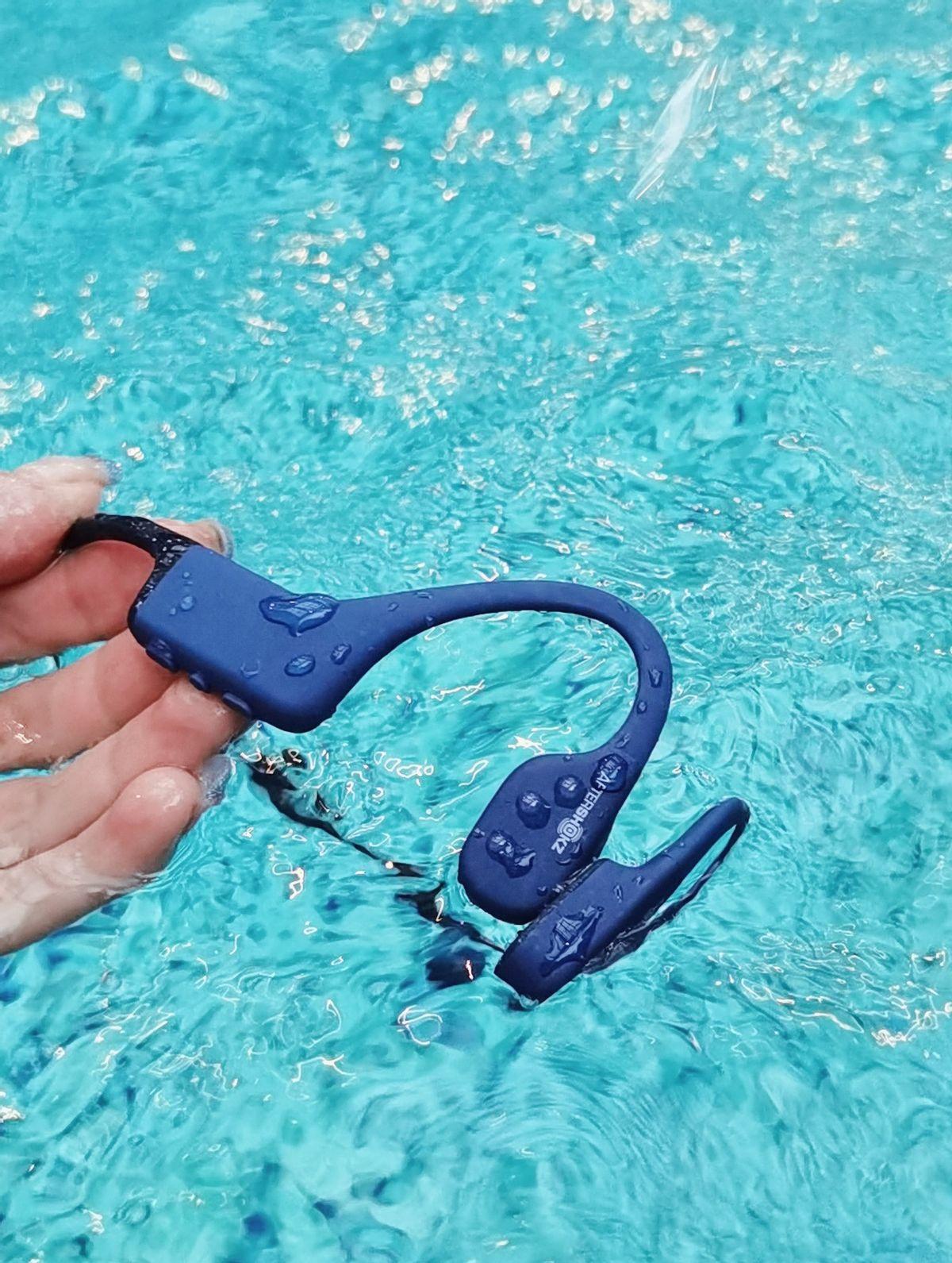 在游泳這種長時間運(yùn)動中,耳機(jī)佩戴的舒適感十分重要,OpenSwim采用骨傳導(dǎo)技術(shù),“開放聆聽”設(shè)計,只要把耳機(jī)貼在耳朵前面的顳骨處就可以了,對耳道狹窄、敏感的用戶友好,根本不用把耳機(jī)塞入耳道,徹底解決了耳機(jī)壓迫耳道神經(jīng),造成耳朵腫脹、頭暈頭疼的問題,在進(jìn)行游泳這種長時間運(yùn)動使用OpenSwim的舒適感爆棚,完全碾壓入耳式耳機(jī)。