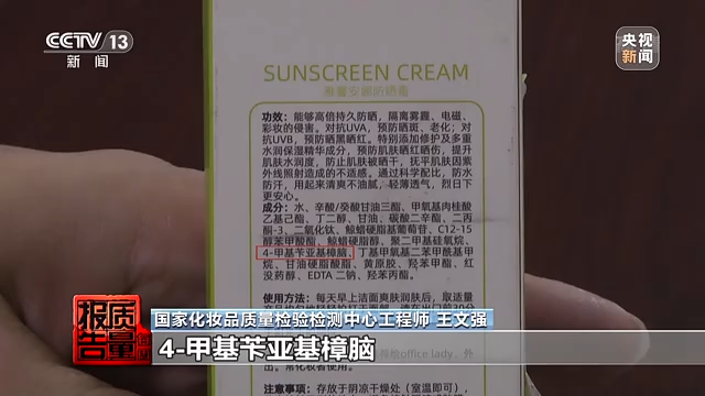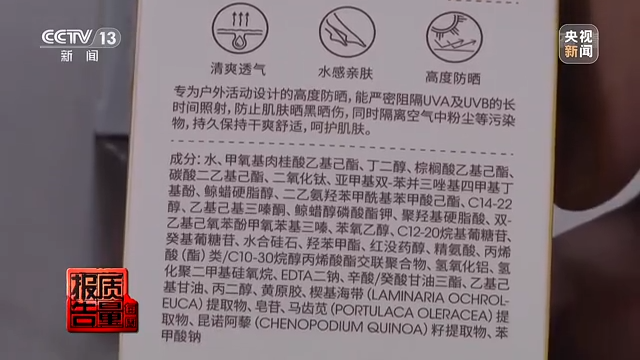 據(jù)檢測工程師介紹,產(chǎn)品標簽和注冊信息中標注了的成分,實際卻未檢出,這樣的產(chǎn)品可能達不到應(yīng)有的防曬果。而在采訪中記者注意到,這款標稱“雅馨安娜防曬霜”的問題不止于此,檢測工程師在其中檢出了一種兒童、孕婦等敏感人群需謹慎使用的防曬劑成分——二苯酮-3,而這個成分在其產(chǎn)品標簽中并未標注。
