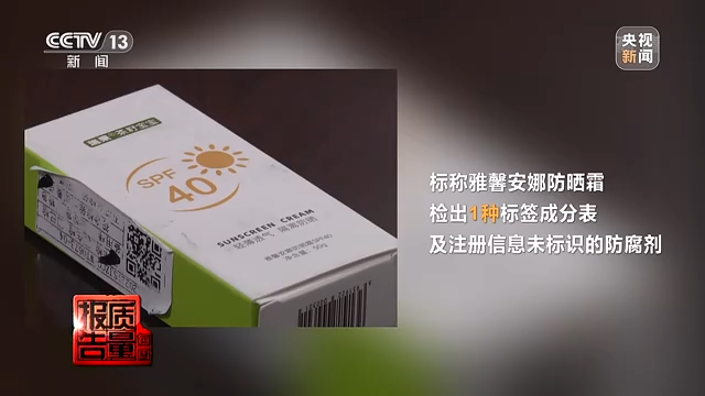 標稱雅馨安娜防曬霜檢出1種標簽成分表及注冊信息未標識的防腐劑。
