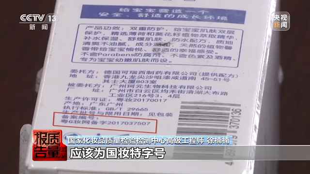 化妝品質(zhì)量檢驗檢測中心高級工程師 徐楠楠:此次網(wǎng)購產(chǎn)品“可瑞西寶貝水潤防護乳”,網(wǎng)頁宣稱具有物理防曬功,為兒童防曬化妝品,屬于特殊用途化妝品。但是實際產(chǎn)品為防護乳,屬于普通化妝品,而非特殊用途化妝品。產(chǎn)品的標簽上面顯示的備案號為非特殊用途化妝品的備案號,特殊用途化妝品的編號應(yīng)該為“國妝特”字號,標簽上的成分雖然標注了物理防曬劑成分為二氧化鈦和氧化鋅,但是根據(jù)產(chǎn)品檢驗檢測結(jié)果顯示,物理防曬劑雖然有微量檢出,但含量遠未達到起防曬果的含量要求。說明經(jīng)營者利用網(wǎng)頁對商品做出了與實際內(nèi)容不符的虛假宣傳。