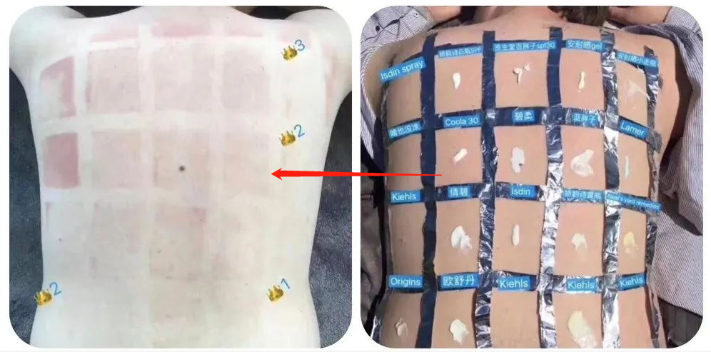 將20多種防shai分區(qū)涂抹在背上,暴曬過后,蕞白區(qū)域居然是膠帶下的肌膚!