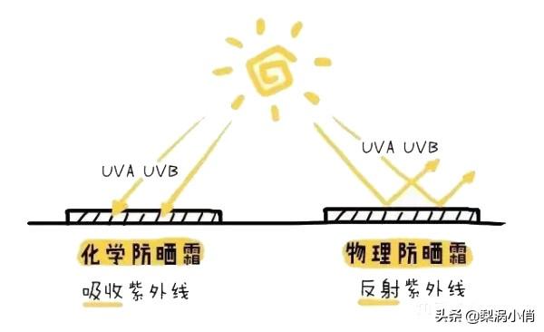 現(xiàn)市面上的防曬大體分兩類:物理防曬(散射或反射光線)跟化學(xué)防曬(吸收光線,化學(xué)反應(yīng))。