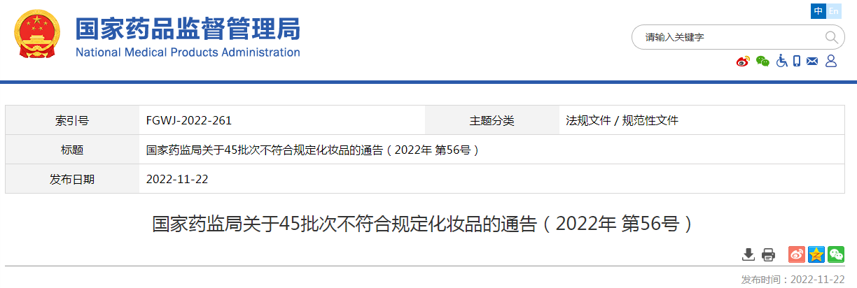 45批次不符合規(guī)定化妝品信息