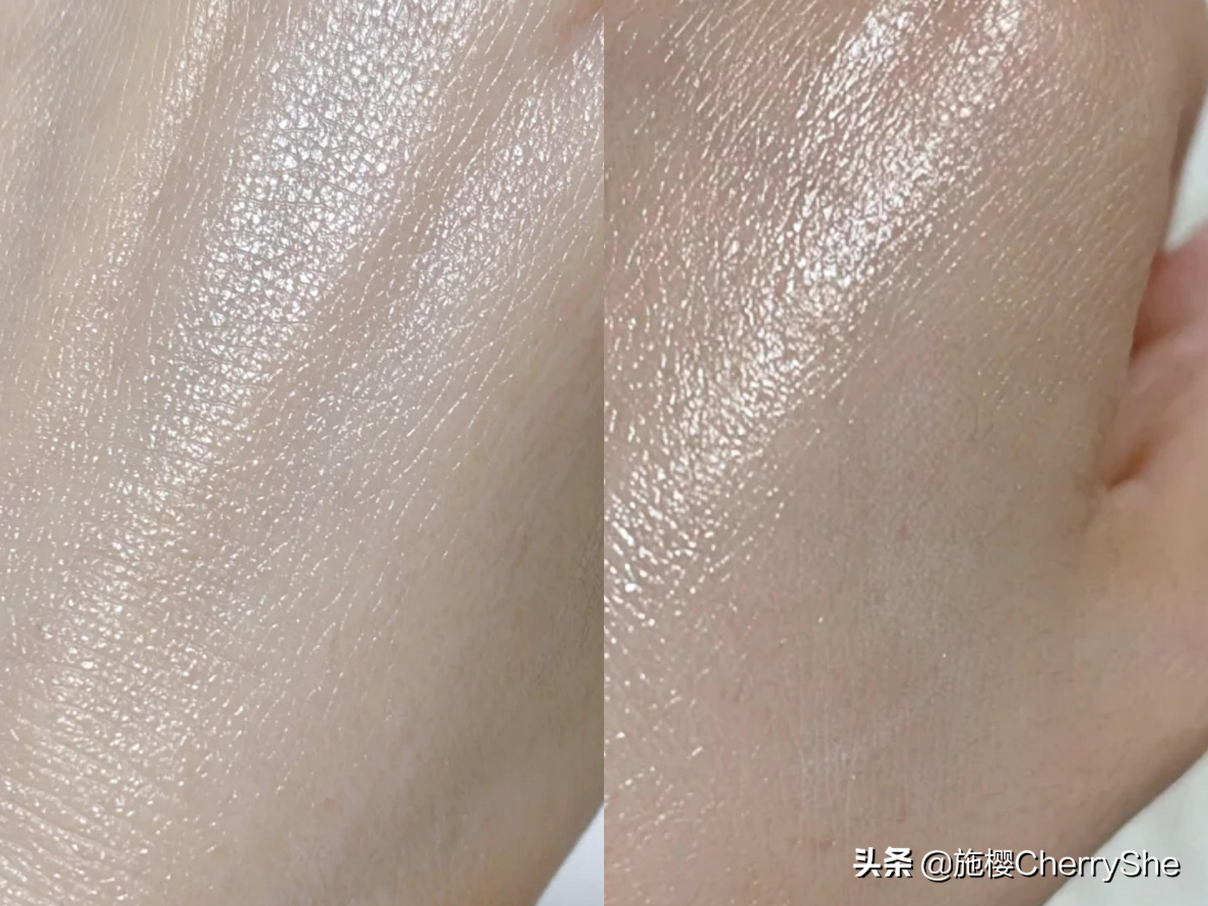 剛涂完,左:安耐曬 右:歐萊雅小金瓶